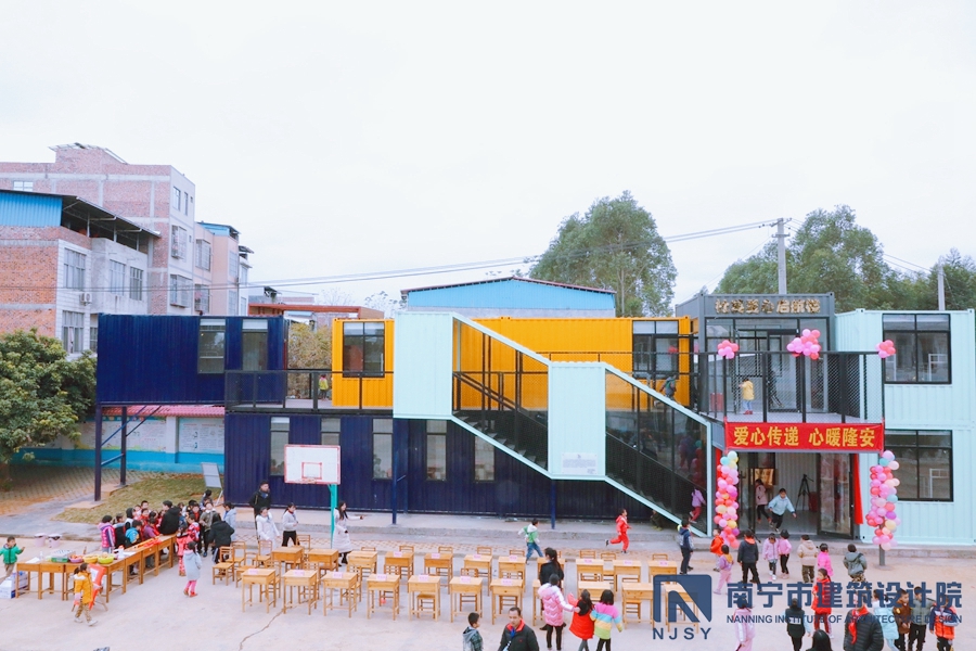 隆安縣古潭鄉(xiāng)育英村是我院定點幫扶村之一,在幫扶調研過程中,得知不少學生家離學校較遠,但學校又缺乏宿舍供學生休息。于是,我院的設計團隊及相關愛心人士積極聯(lián)系對接,引進了中國青少年發(fā)展基金會“會飛的盒子”公益項目,為上學路途遙遠的學生提供輕便安全的新型宿舍,并由我院無償提供建筑設計服務。