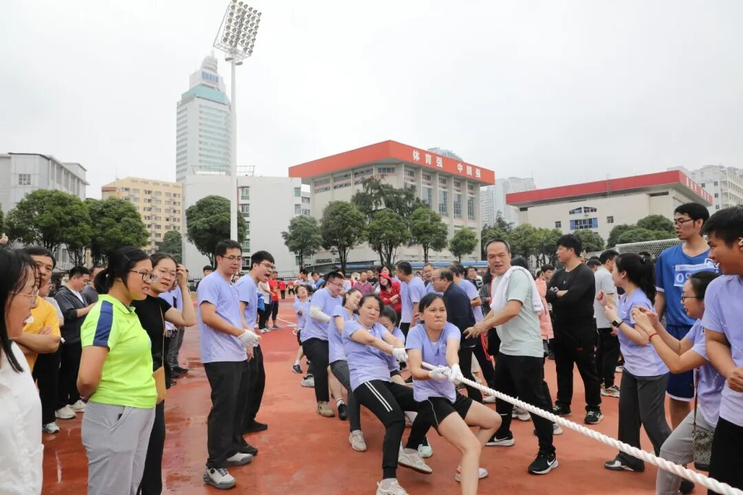“旋風竹竿跑”考驗團隊默契與協(xié)調,隊員們手持長桿,如旋風般穿梭,引得場邊歡呼陣陣;“集體跳長繩”展現節(jié)奏與配合的極致,繩影翻飛,身姿靈動;“接力滾鐵環(huán)”喚起溫馨的童年記憶;“4×100米混合接力”以速度與默契的碰撞將賽事推向高潮;“拔河比賽”作為力量的巔峰對決,吶喊助威聲震耳欲聾,將團隊精神詮釋得淋漓盡致。